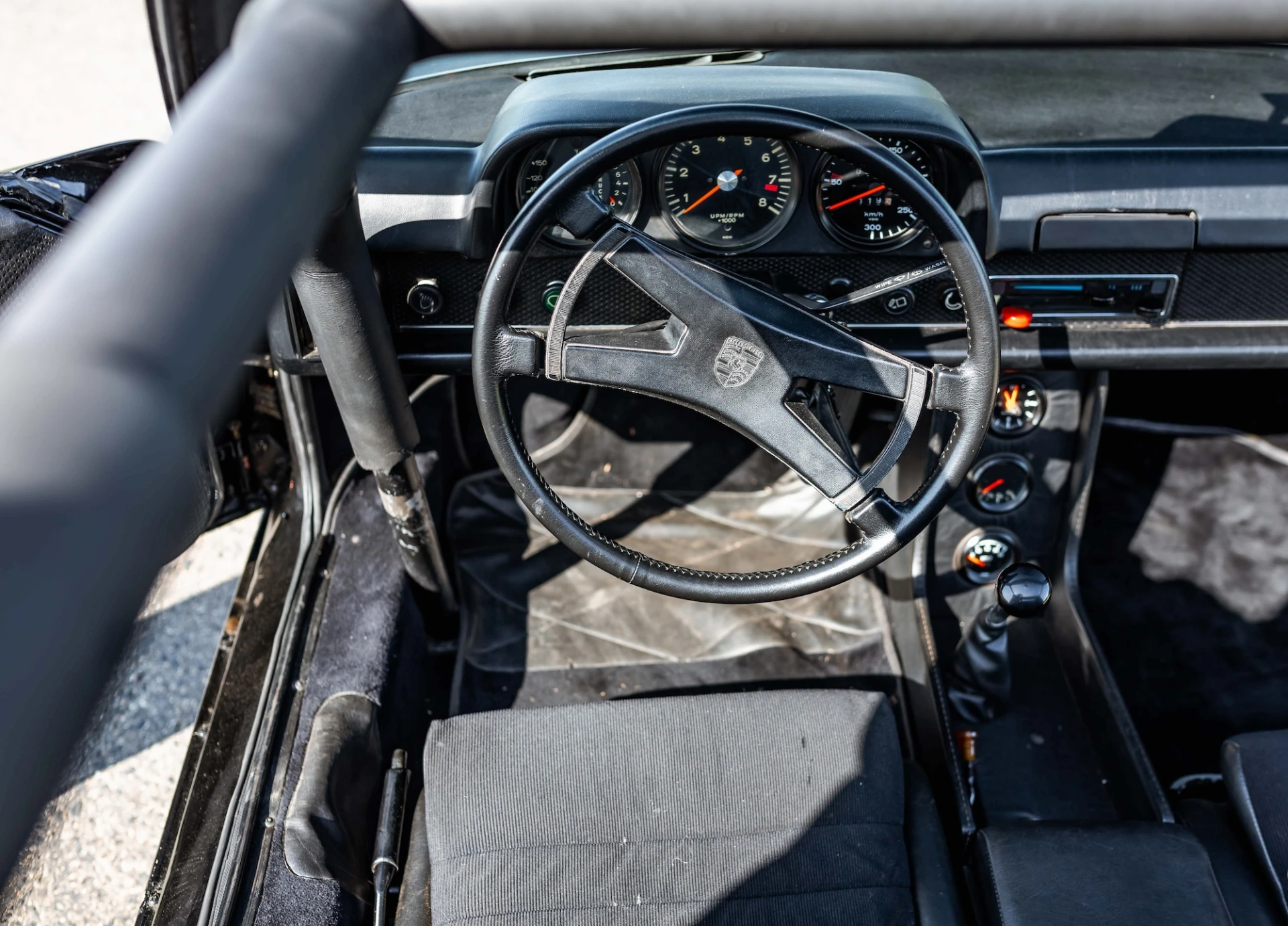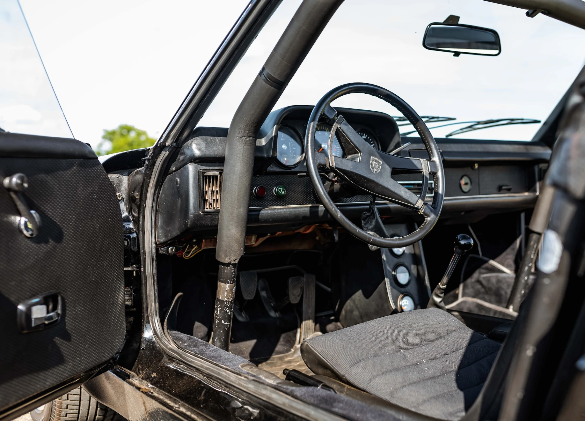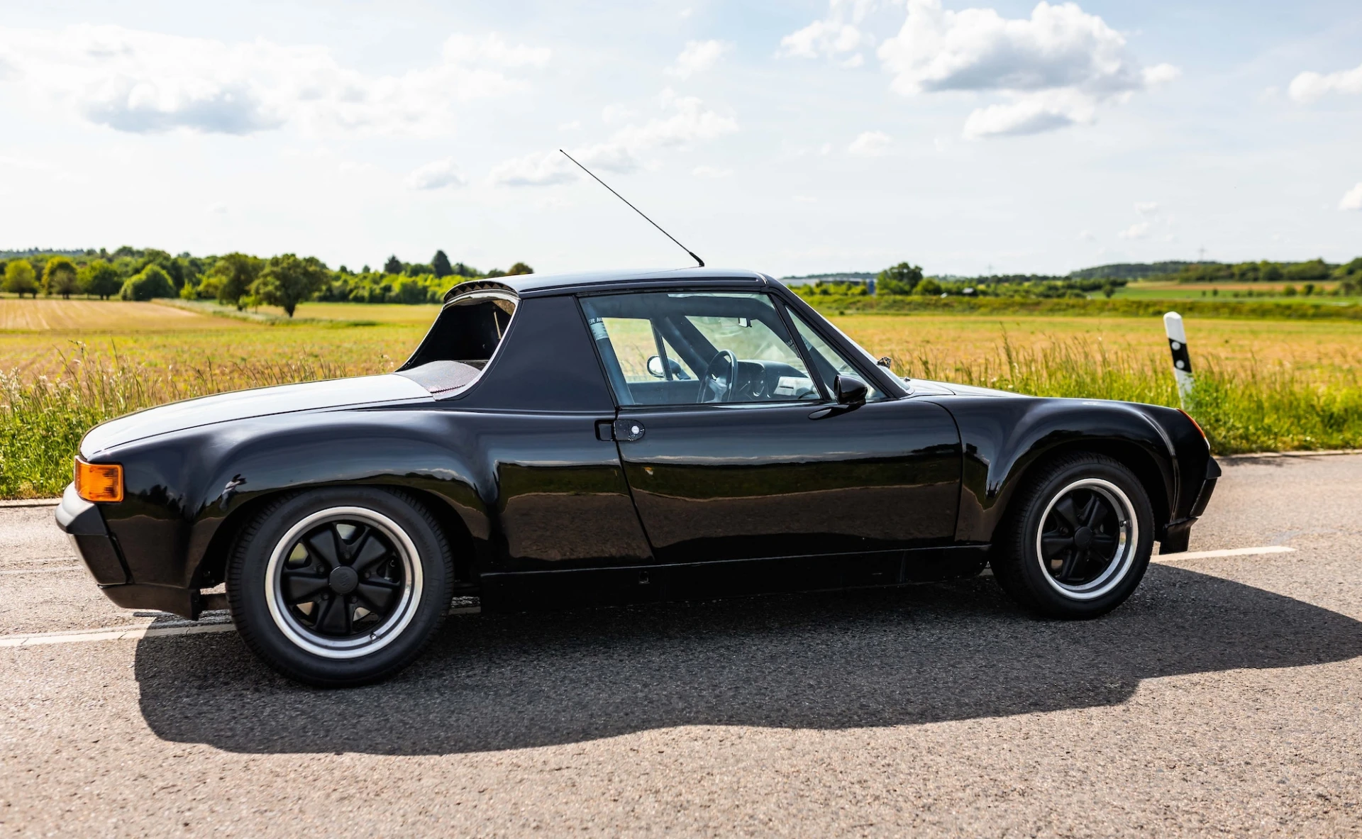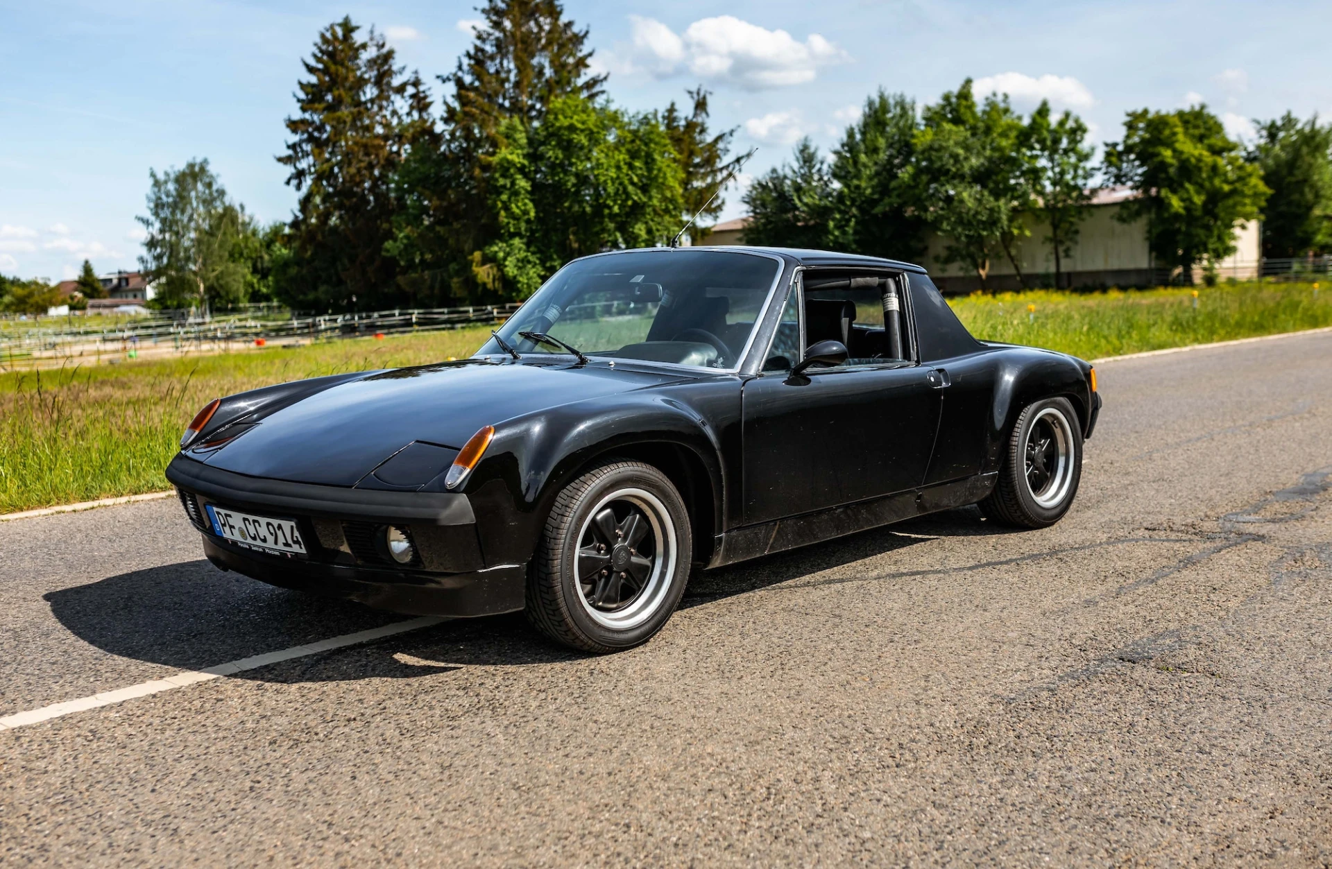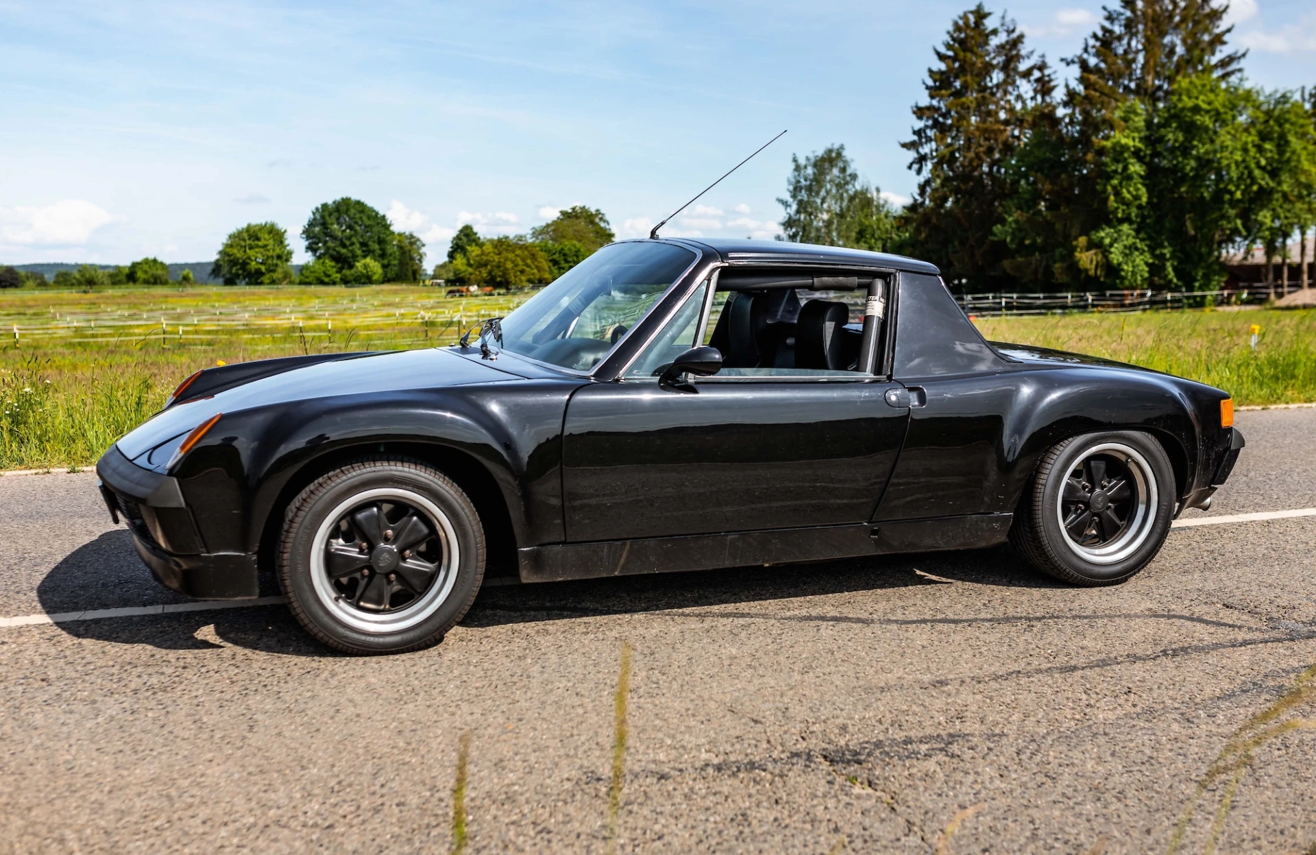 This Porsche 914/6 is a distinctive mid-engined sports car, which has been retrofitted with a more powerful 911 S engine, flared wings and a roll cage.