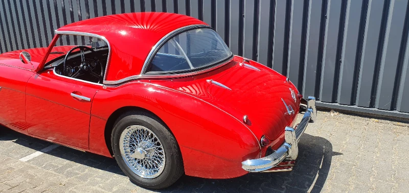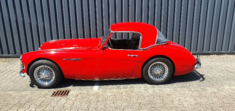 For sale Austin Healey 3000 BT7 MK1 with a beautiful, perfectly fitting rare original factory hardtop. New 72 spoke wire wheels, new stainless steel exhaust, side windows, toneau cover, softtop, overdrive, etc. Finished in Colorado Red. Including various documents, original drivers handbook, workshop manual, etc. This car presents beautifully, drives great and is ready to be enjoyed by the next owner.