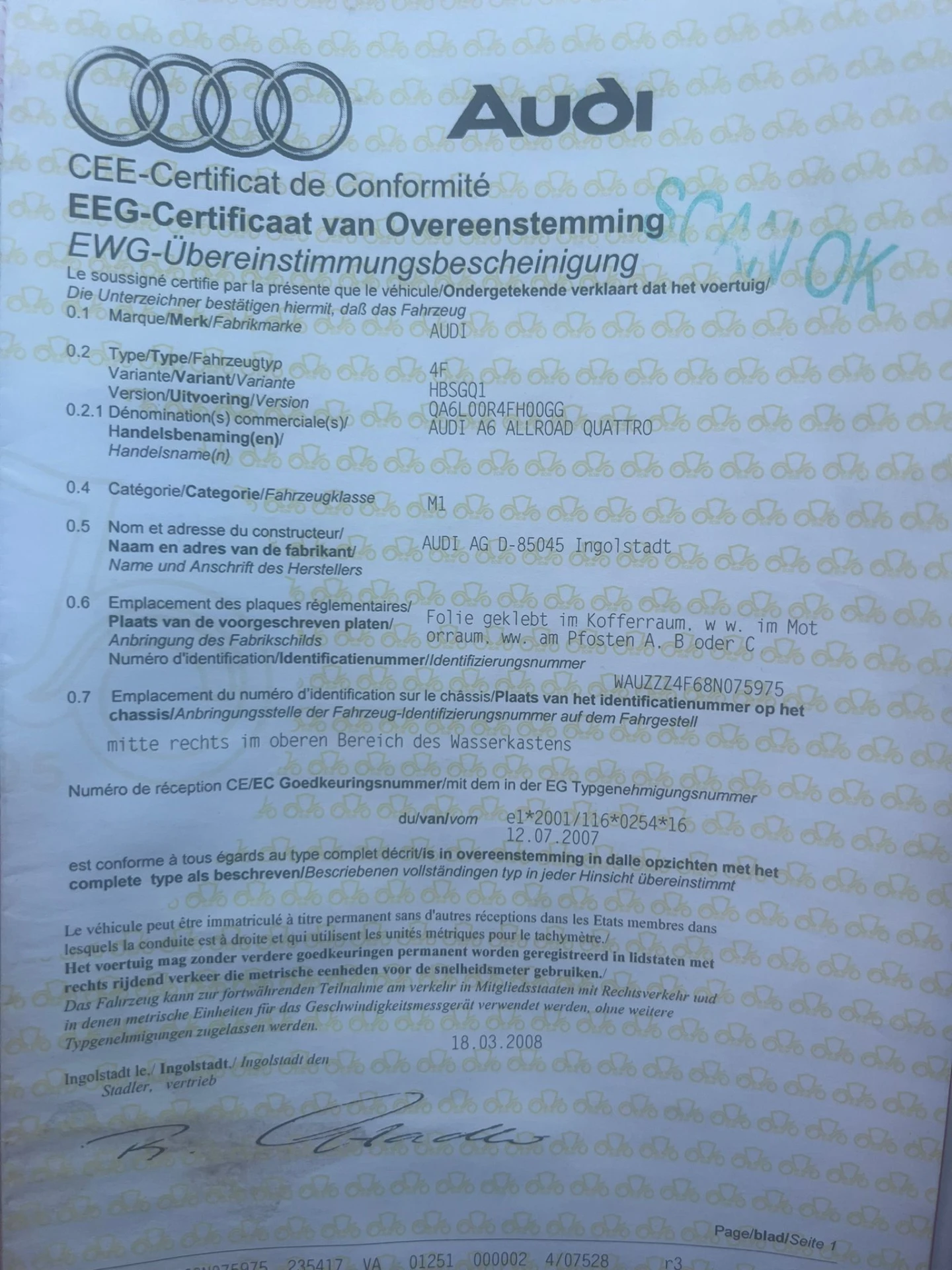 audi a6 quattro uit 2008, diesel. Automatisch geschakeld met lederen interieur en airco, buiten deuk vooraan en achteraan, ook trekhaak. Rijdt nog steeds vlot, steeds onderhouden bij merkgarage.