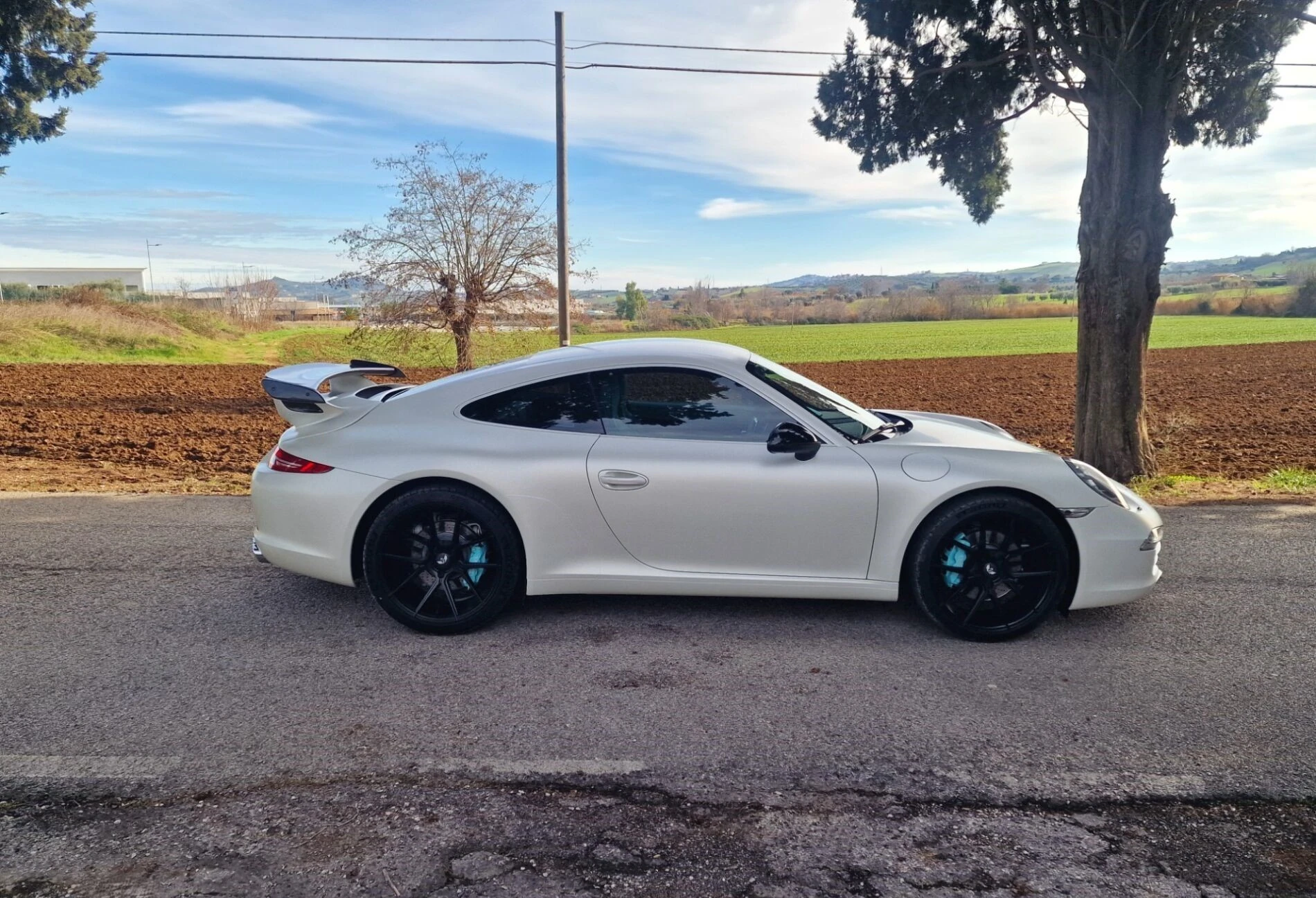 Porsche 911 (991) 3.4 Carrera This uniquely configured Porsche is made for you. This 2014 Porsche 911 (991) 3.4 Carrera, originally from Italy, is a second-hand vehicle with 149,900 km on the clock, as certified by its Porsche service log. This vehicle has a unique aesthetic customisation. The vehicle is in very good condition. The matt white bodywork (wrap over Metallic Black). It features a complete GT3-style styling kit including a rear sports spoiler and 20-inch black alloy wheels. The interior features unique custom Tiffany blue leather upholstery. The steering wheel and dashboard are in very good condition. This car has the following features: 20-inch wheels, sports exhaust, PDK gearbox, custom full leather interior, GT3-look styling package. The mechanics are working normally, as is the gearbox.