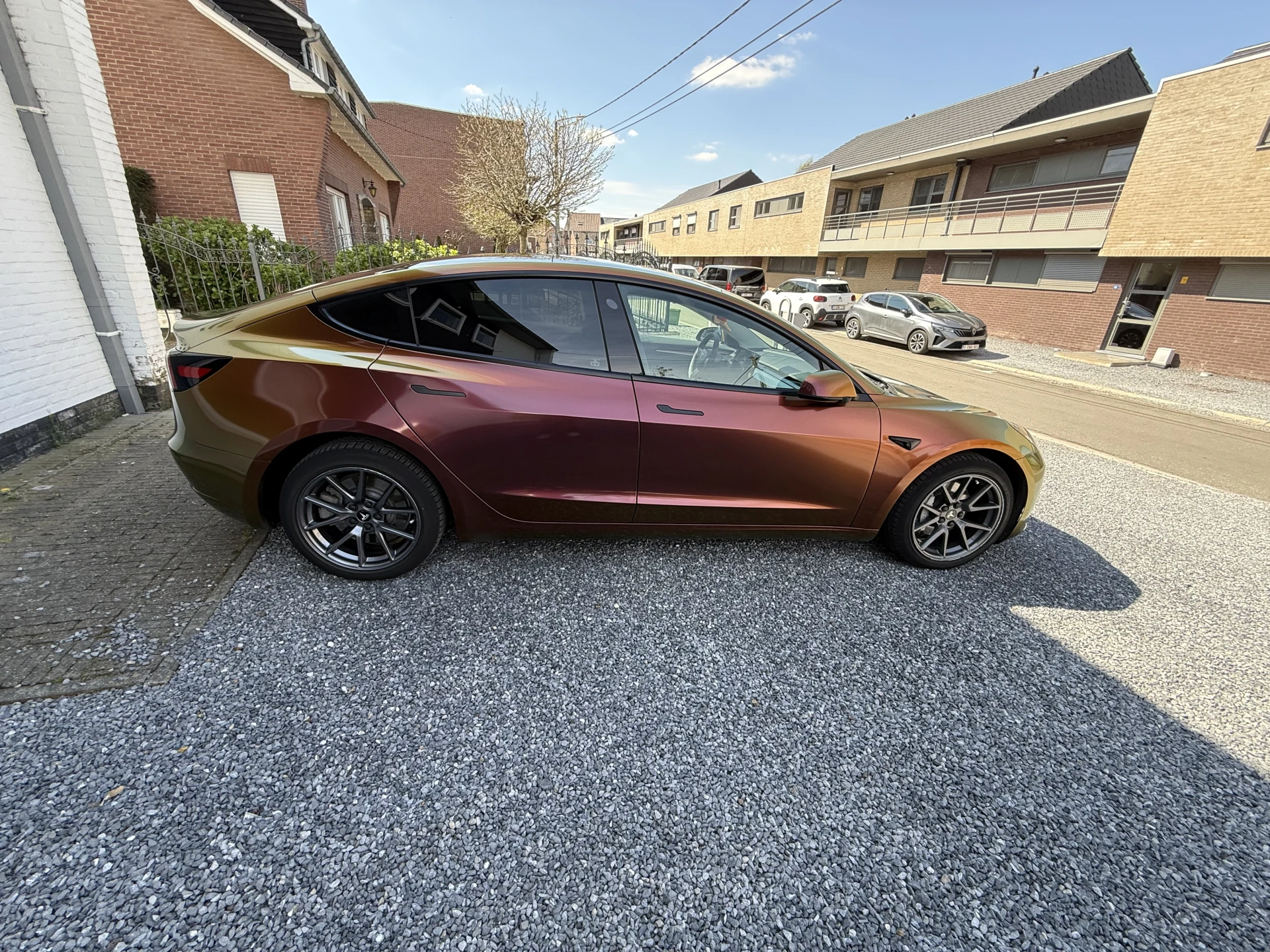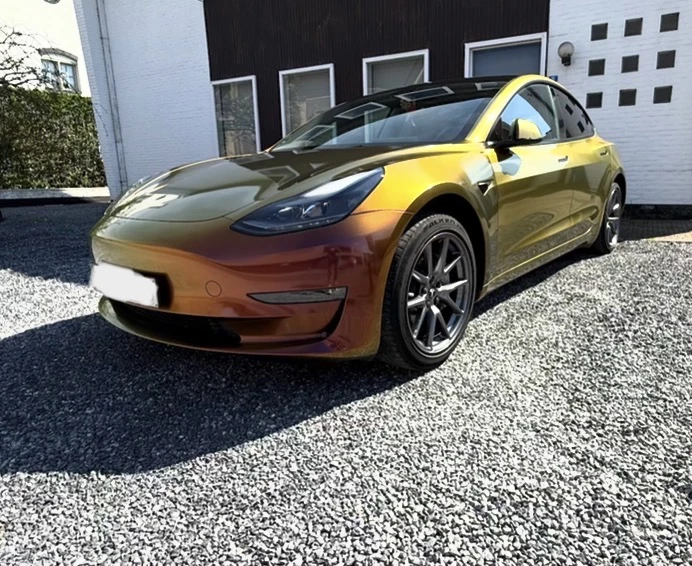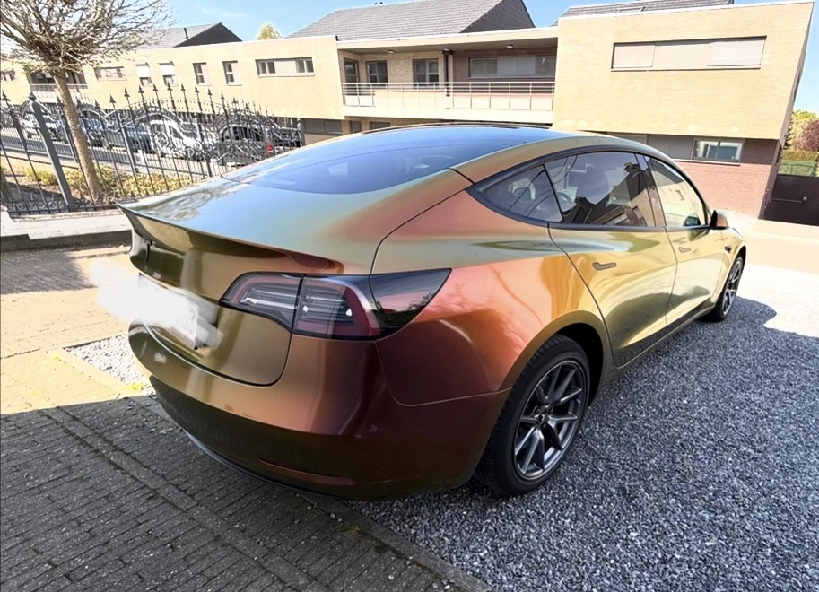 De auto is gewrapt volledige buitenkant en ook vanvoor in de auto aan het dashboard, de zij lijsten van de twee voorste deuren. Oorzpronkelijke kleur va de auto is zwart. De wrap kan er zonder schade afgehaald worden waardoor er een onbeschadigde zwarte lak is.