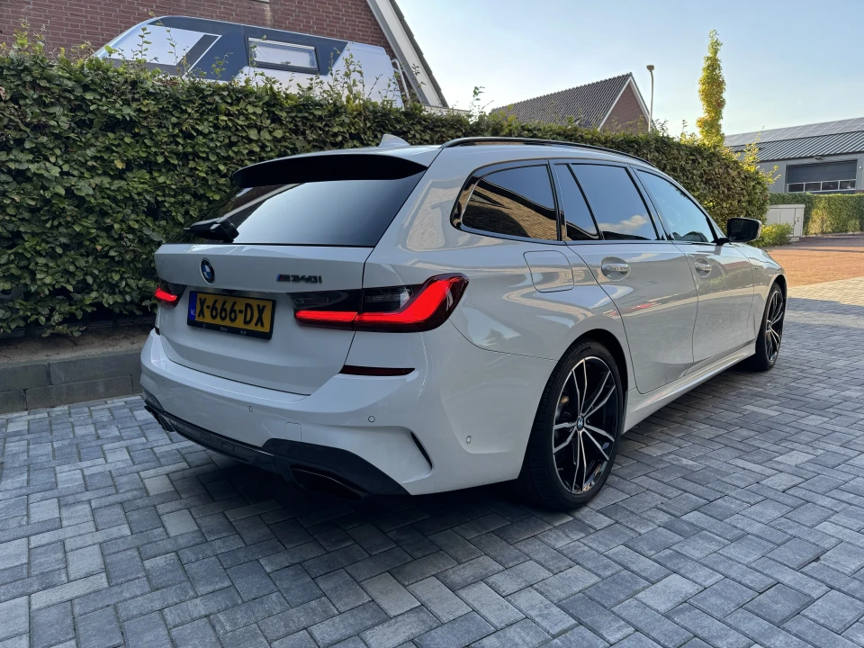 Aangeboden BMW M340i Touring Xdrive High Executive Edition uit 2019. Deze originele BMW M340i touring beschikt nog over een BMW onderhoudscontract tot 12-08-2027 (of ca. 120.000km). Al het onderhoud uitgevoerd door BMW. Deze liefhebbers M340i verkeerd zowel buiten- als binnenzijde in een nagenoeg nieuwstaat. Kilometerstand ca. 87.600km Daarmee uitgerust met diverse prettige opties en pakketten. Waaronder LED koplampen, panorama dak, stoelverwarming, elektrische achterklep, elektrische trekhaak, binnen- en buitenspiegels aut. Dimmend, verkeersbord detectie, CarPlay, adaptief onderstel etc. Technische informatie Vermogen: 275 kW (374 PK) Transmissie: Automaat Acceleratie (0-100): 4,6 s Topsnelheid: 250 km/u Optiepakketten o.a.: • Audio Media Pack (Audio installatie, Cruise control adaptief met Stop&Go, Draadloze telefoonlader, Stuurhulp, WiFi voorbereiding) • Comfort Access pakket (Elektrisch bedienbare achterklep, Keyless entry) • Driving Assistant (Dodehoekdetectie met correctie, Kruisend verkeer detectie, Rijstrooksensor met correctie, Uitwijk assistent) • M Sport Pack (Lichtmetalen velgen 19, M sportstoelen, M sportstuur) • Parking Pack (Achteruitrijcamera, Parkeer-assistent) • Adaptief onderstel Comfort & Interieur • Achterbank in delen neerklapbaar • Airco separaat achter • Aluminium interieur afwerking • Armsteun achter • Armsteun voor • Achteruitrijcamera • Audio installatie premium • Bagage-scheidingsnet • Bandenspanningscontrolesysteem • Bestuurdersstoel in hoogte verstelbaar • Binnenspiegel automatisch dimmend • Buitenspiegels automatisch dimmend • Boordcomputer • Connected services • DAB-ontvanger • Draadloze telefoonlader • Electronic climate controle • Elektrische ramen achter • Elektrische ramen voor • Keyless start • Halflederen bekleding • Lederen stuurwiel • Navigatie-systeem full map + hard disk • Radio DAB • Schakelmogelijkheid aan stuurwiel • Sportstoelen • Sportstuur • Spraakbediening • Stuurbekrachtiging snelheidsafhankelijk • Stuur verstelbaar • Telefoonintegratie premium • Verwarmde voorstoelen • Volledig digitaal instrumentenpaneel • WiFi Exterieur • Achterruit apart te openen • Achteruitrijcamera • Buitenspiegels elektrisch verstelbaar • Buitenspiegels verwarmbaar • Dakrails en raamomlijsting hoogglans zwart • Dimlichten automatisch • Elektrisch bedienbare achterklep • Gelimiteerd slipdifferentieel (sper diff achteras) • Keyless entry • Koplampen adaptief • LED achterlichten • LED dagrijverlichting • LED koplampen • M Aerodynamica • Ruitensproeiers verwarmbaar • Sportonderstel Veiligheid • Accident Avoidance System • Achteropkomend verkeer waarschuwing • Achteruitrij assistent • Afdaal assistent • Alarm klasse 3 • Anti Blokkeer Systeem (ABS) • Bots waarschuwing systeem • Brake Assist System • Cruise control adaptief met Stop&Go • Dodehoekdetectie met correctie • Electronic Stability Program (ESP) • Hill hold-functie • Kruisend verkeer detectie • Parkeersensor achter • Parkeersensor voor • Regensensor • Rijstrooksensor met correctie • Tractie Controle Systeem (TCS) • Uitwijk assistent • Verkeersbord detectie • Vermoeidheids herkenning Deze M340i is volledig origineel. Alles is inzichtelijk, gedocumenteerd en kloppend. Komt met alle documentatie, facturen en dealer onderhoudsgeschiedenis, 2 originele handzenders. Echte liefhebbers auto, netjes 98 getankt etc. Met het onderhoudscontract is het eerstvolgende (groot) onderhoud gedekt.